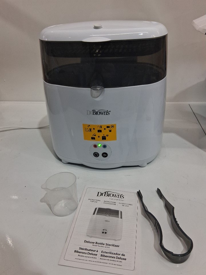DR. BROWN'S DELUXE ELECTRIC BOTTLE STERILIZER, UP TO 6 BOTTLES PER CYCLE - WHITE/GREY (MODEL: ‎AC045)