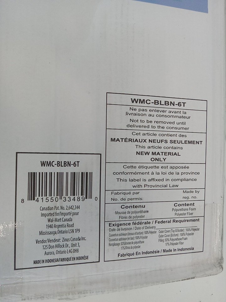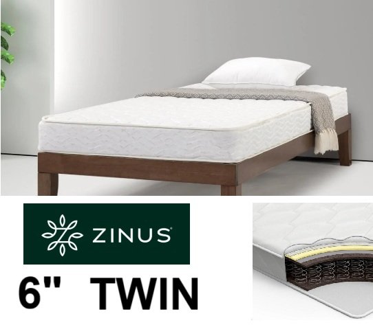 Zinus Spa Sensations 6 inch Support Spring Mattress - TWIN - WHITE (MODEL: WMC-BLBN-6T)