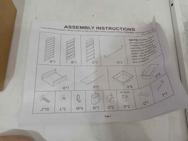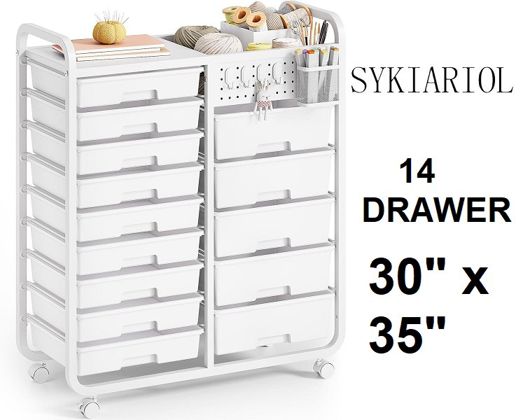 SYKIARIOL Utility Cart with 14 Drawer storage WITH 4 HOOKS - 30" X 35" -white