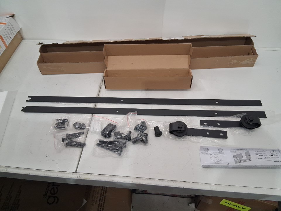 dulcii heavy duty steel sliding barn door hardware kit - 6.6ft - black