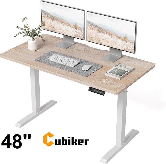 cubiker adjustable electric standing desk with memory buttons - 48" x 24" x 28.3" to 45.6" - white/oak (model: s24)