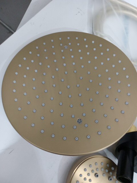 Lavatrum wall mounted high pressure rain 360° swivel head shower set - 10" - brushed gold (model: ‎LV-S560S60J5550)
