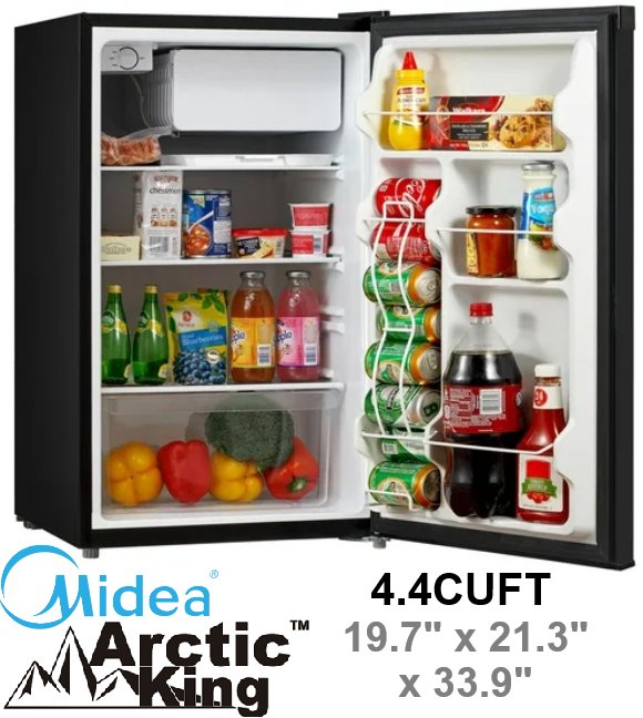 Midea Arctic King Miniature Refrigerator - 4.4CU.FT - Black (model: ARM44S5ABB)