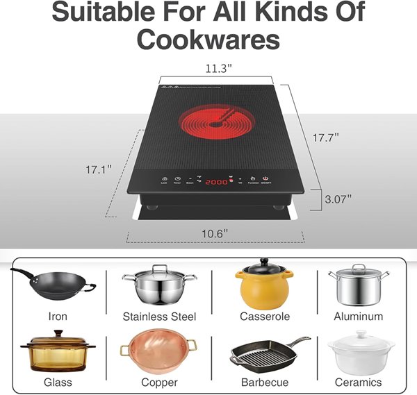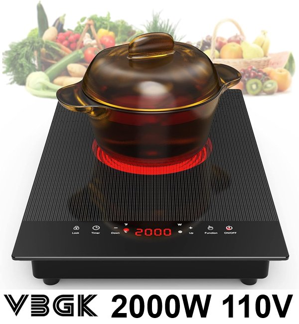VBGK Electric Ceramic SINGLE BURNER Cooktop with Touch Control AND Hot Surface Indicator - 2000W 110V - BLACK