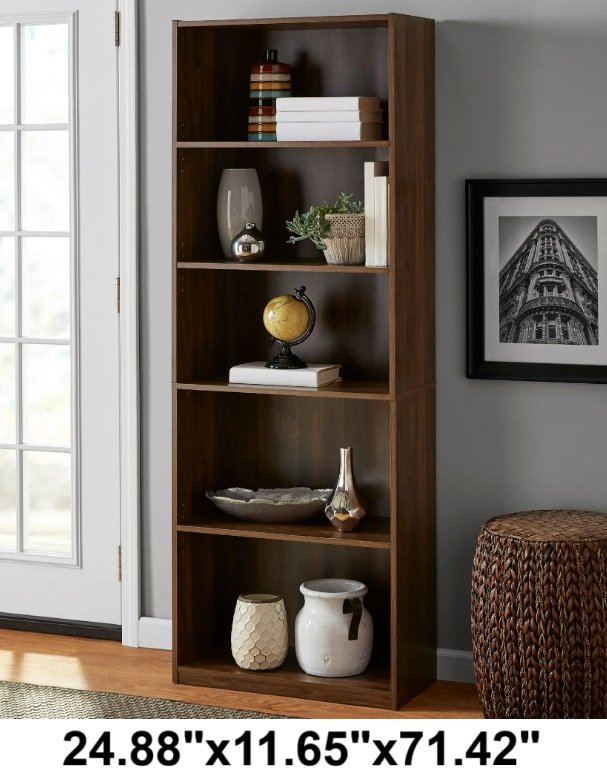 Mainstays 5-Shelf Bookcase with Adjustable Shelves - 24.88"X 11.65"X 71.42" - CANYON WALNUT (MODEL: MS19-D1-1009-25)