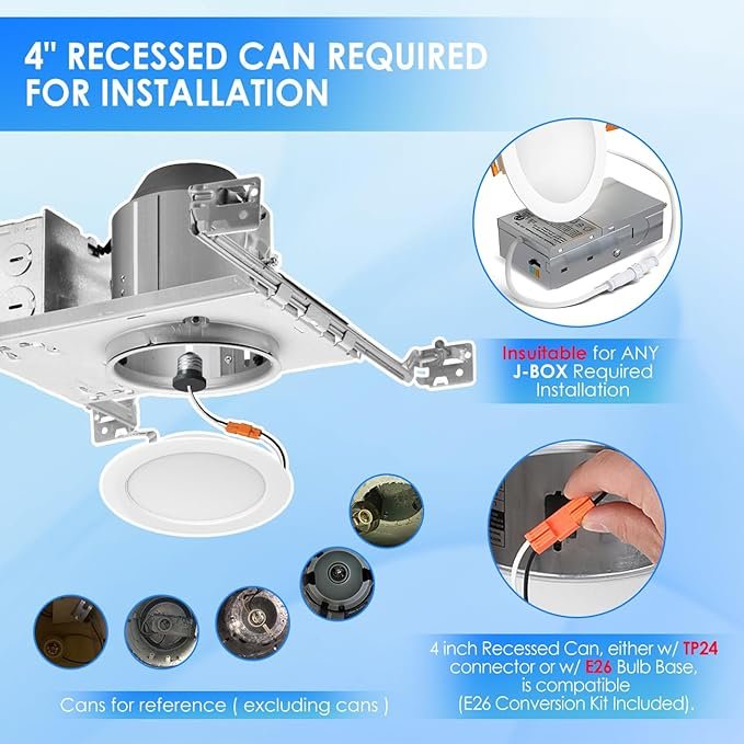 48PK anwio dimmable retrofit recessed pot lighting - 4" - 2700k-6000k - white