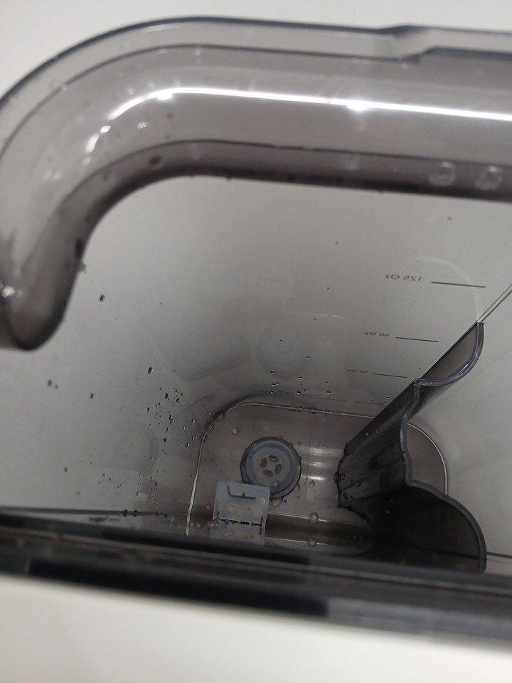 there is a large chip in the base of the water tank, but it does not leak (see photos). there is moisture present due to previous use