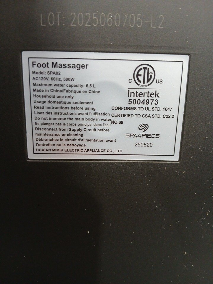 SPA4PIEDS Collapsible Foot Spa Bath Massager with Bubbles - BLack (MODEL: SPA02)