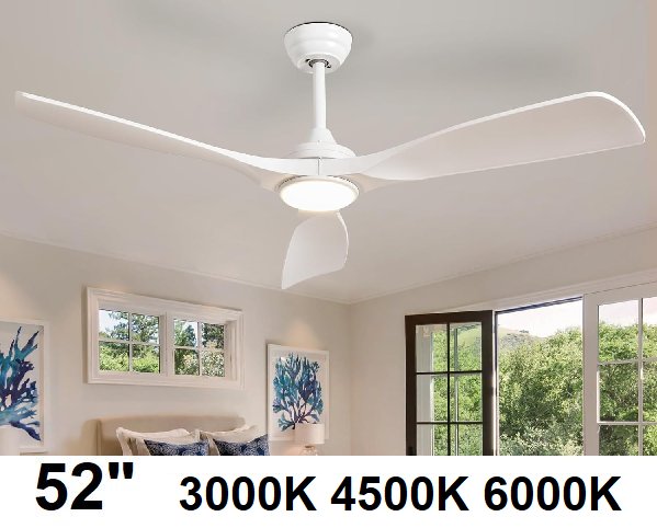 bvenubiglite indoor outdoor ceiling fan with led light 3 blade for patios remote control and app ultra quiet - 52" - 3000k - 4500k - 6000k - white (Model: ws-fpz180-18c-wh)