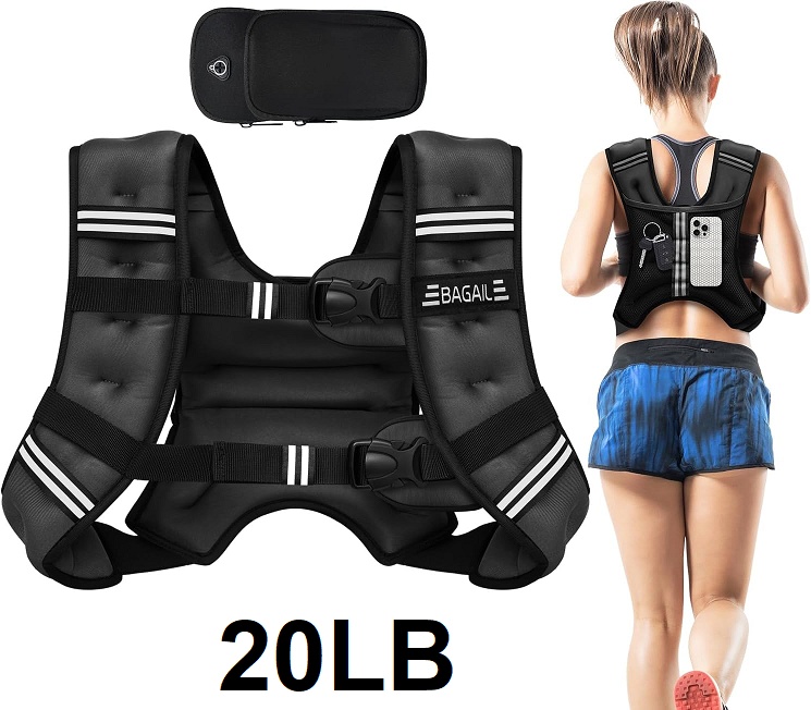 BAGAIL Weighted Vest with phone holder - 20lb - black