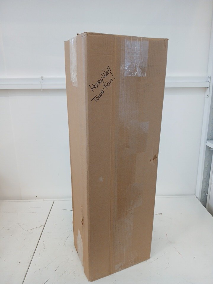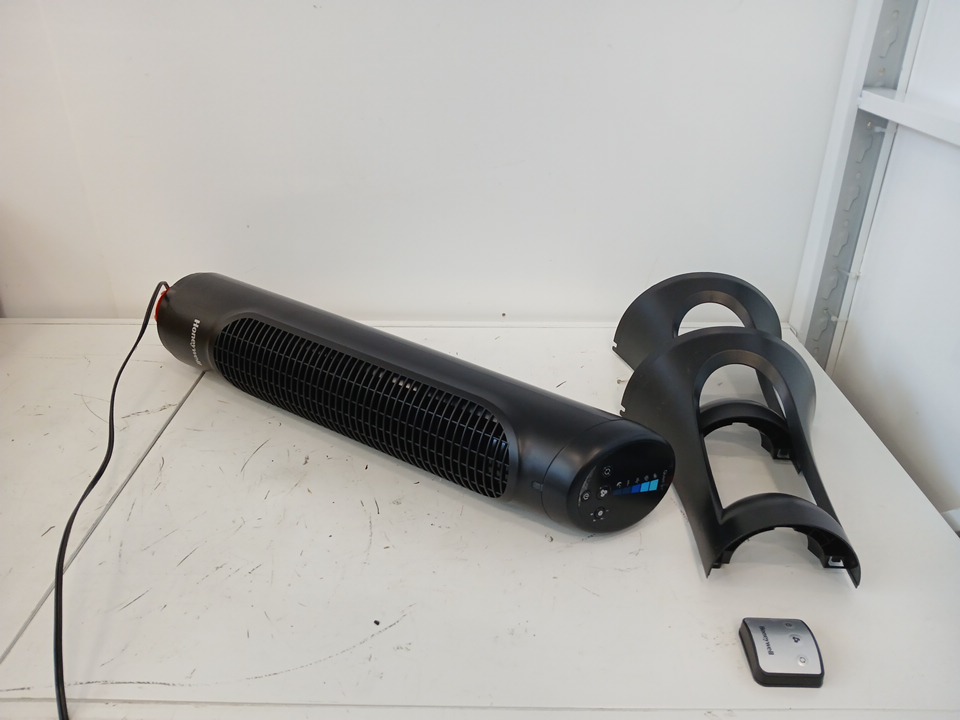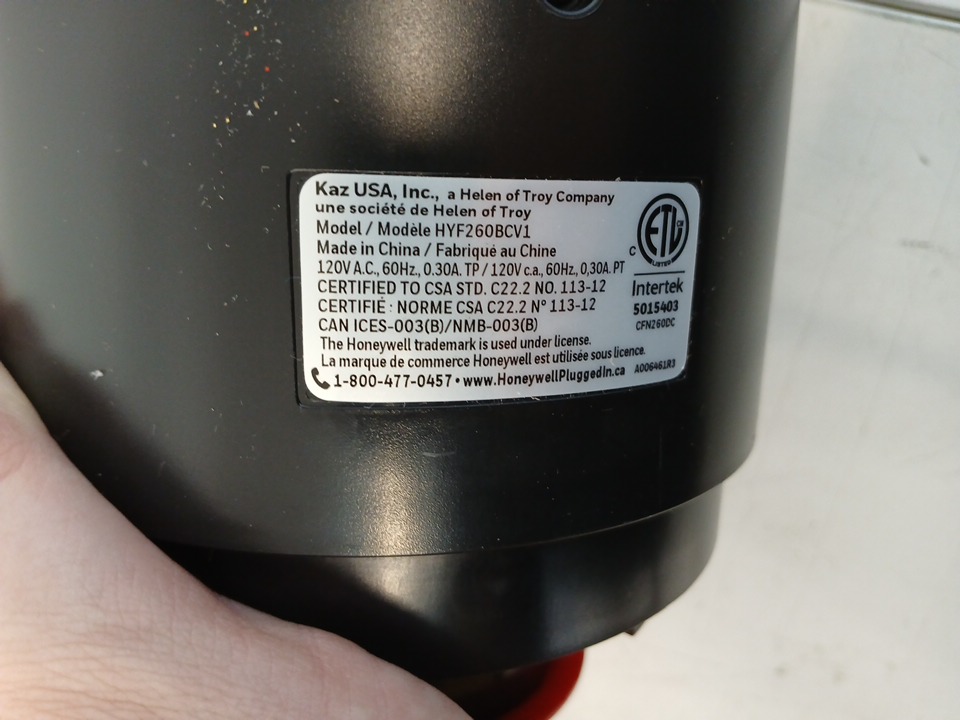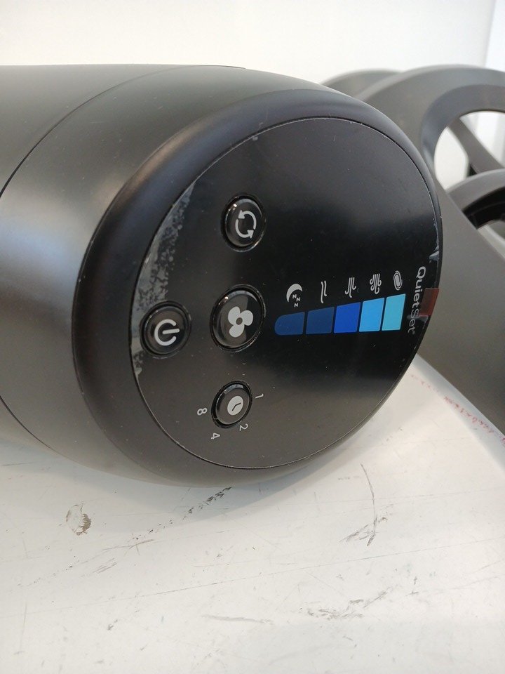 the fan has some scuffs near the buttons and has been tested for power. the fan needs cleaned.