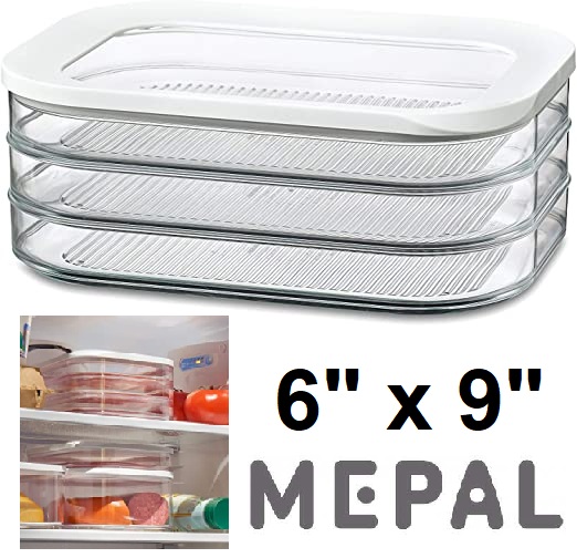 ROSTI MEPAL 3 TIER MEAT KEEPER STACKABLE CONTAINER- 6" x 9"- CLEAR/WHITE
