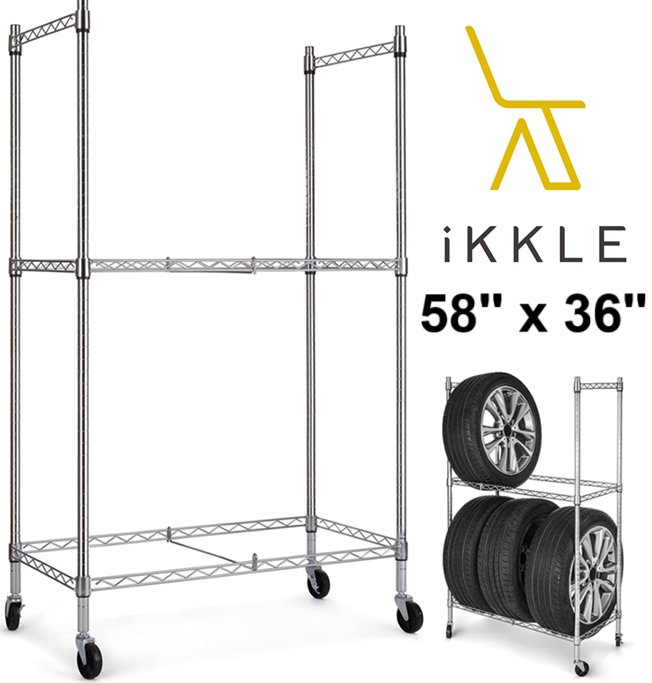 Ikkle Heavy-Duty Metal tire rack/stand - Fits 6 Tires with rims, 58'' x 36'' - Silver (IK3036-hy)