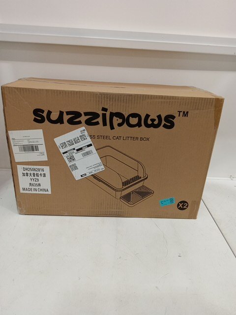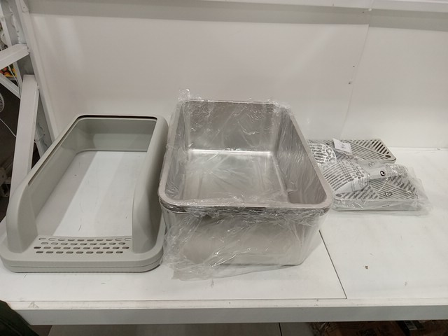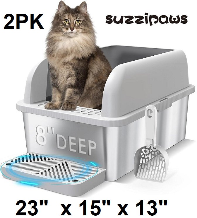 Suzzipaws Deep Stainless Steel Cat Litter Box with Lid and scoop - 23" x 15" x 13" - 8" deep pan - silver/grey (model: ‎CP-MLB01-20)