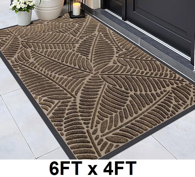 grandaily indoor/outdoor non slip heavy duty super absorbent entryway door mat - 6ft x 4ft - brown