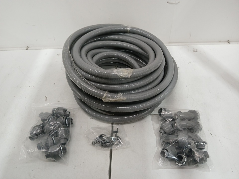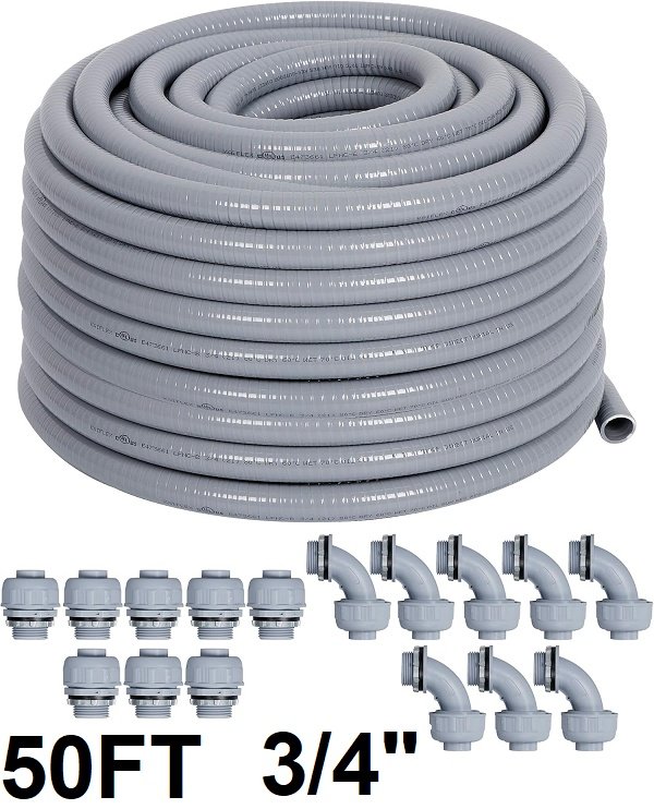 Liquid-Tight Conduit and Connector Kit with 8 straight fittings and 8 angle fittings - 50ft - 3/4" diameter - grey