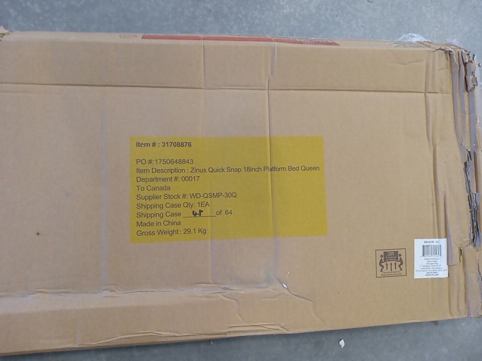 ZINUS QUICK SNAP 18" TALL PLATFORM BED FRAME WITH WOOD SLATS - QUEEN (MODEL: WD-QSMP-30Q)