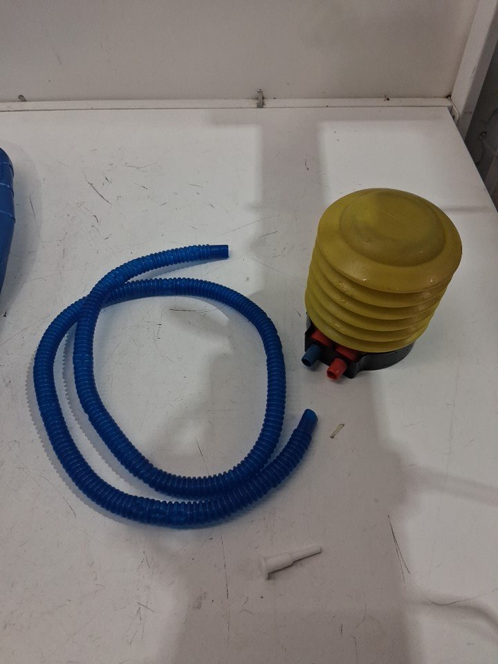 one pump nozzle is missing The ball itself has some scuff marks from previous use Ziploc Bag in which pump comes in has water inside