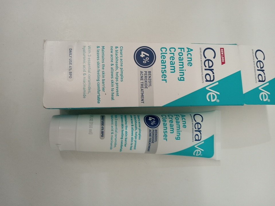 CERAVE ACNE FOAMING CREAM CLEANSER, ACNE TREATMENT WITH 4% BENZOYL PEROXIDE - 150ML
