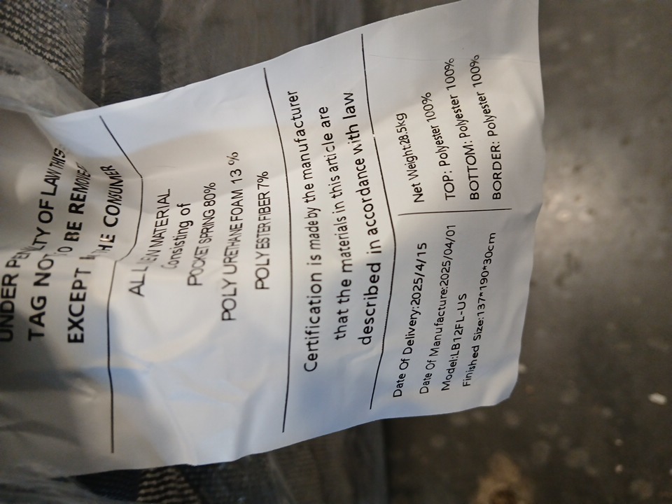 Please be aware mattress is a fully expanded 12" Full and requires proper storage and assistance when picking up