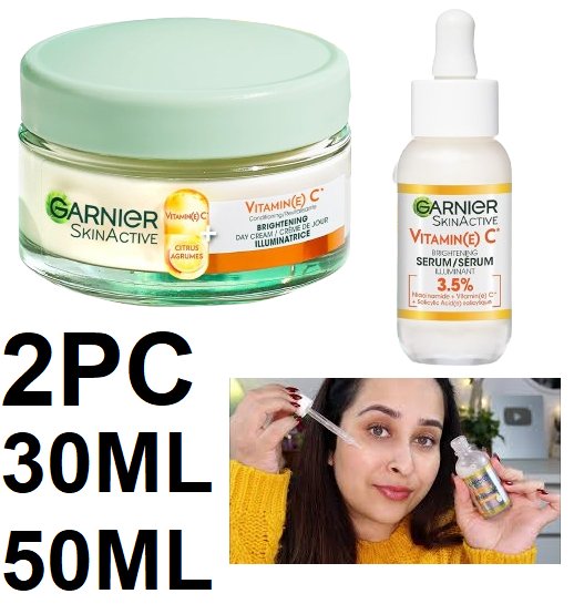 2PC GARNIER SKIN ACTIVE VITAMIN(E)C BRIGHTENING SERUM & DAY CREAM - 30ML & 50ML