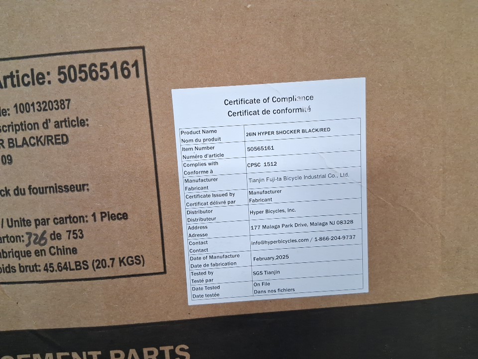Hyper Bicycles Shocker Mountain Bike Adults 16 speed - 26" INCH - Black/Red (model: 50565161)