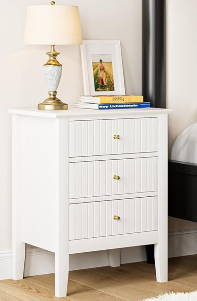 Apetaccat 3 Drawers Modern Side Accent Table Fluted Nightstand - 24.12''x17.80''x13.31'' - white