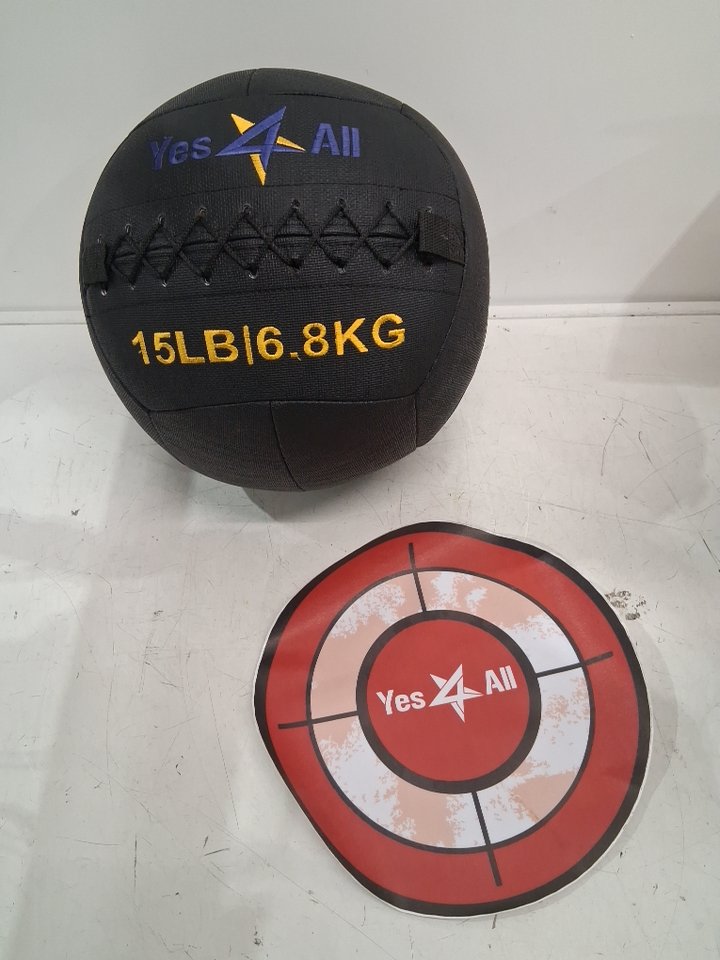 Yes4All Soft Medicine Wall Ball And Target Sticker - 15LB - Black (Model: UNM5)