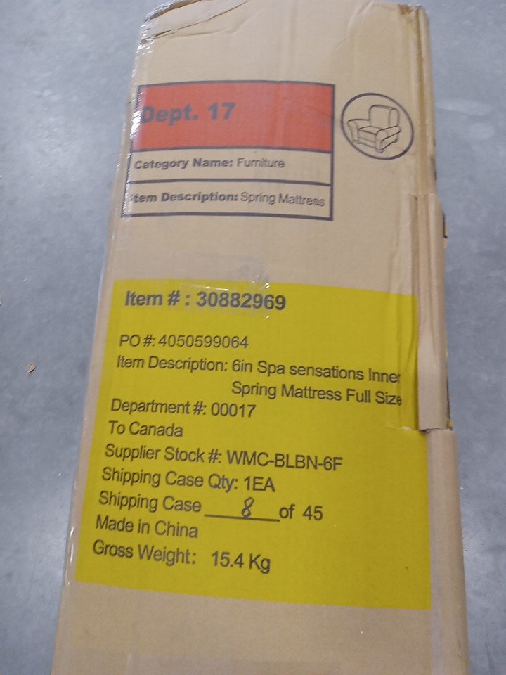 Zinus Spa Sensations 6" Support Spring Mattress - FULL - WHITE (MODEL: WMC-BLBN-6F)