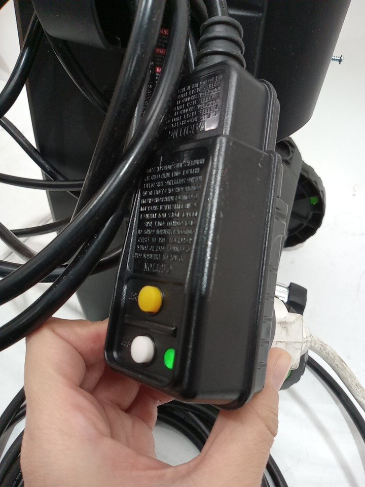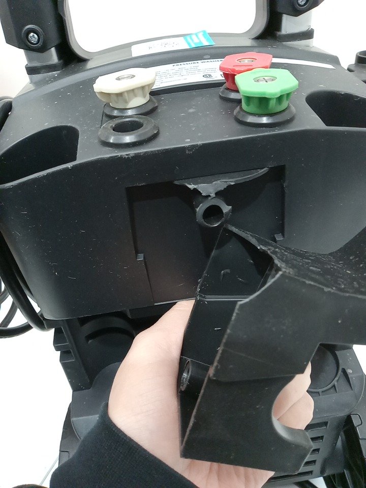 Has dirt stains, missing some accesories and the hook for the cord is broken. Tested for power