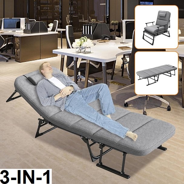 3-in-1 Camping Cot for Adults with Adjustable 5-Positions - 70" x 23" x 11" - 330lb max - grey