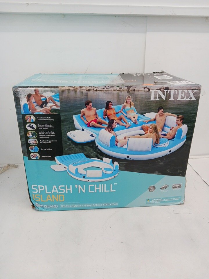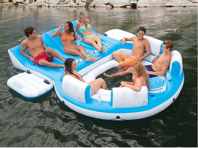 Intex Relaxation Island Inflatable Floating Lounge with Built-In Backrests, 6 Cup Holders, Grab Rope, Swim-Up Boarding Platform, Mesh Bottom for Cooling Comfort and 4 Durable Handles (Model: 56299EP)