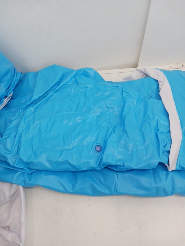 This Inflatable shows signs of previous use, with minor sand and dirt residue present on the surface and seams. The material may exhibit light scuffing or discoloration consistent with outdoor use. All valves, chambers, and attachments appear intact, but the item may require cleaning before use. No major tears or punctures have been observed upon inspection.