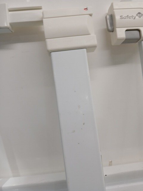 There are scuff marks and residue on the product from prior assembly.