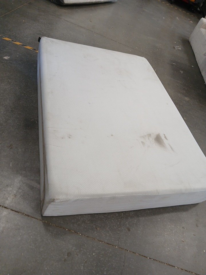 Dirty from warehouse floor and transport Please be aware mattress is a fully expanded 12" full and requires proper storage and assistance when picking up