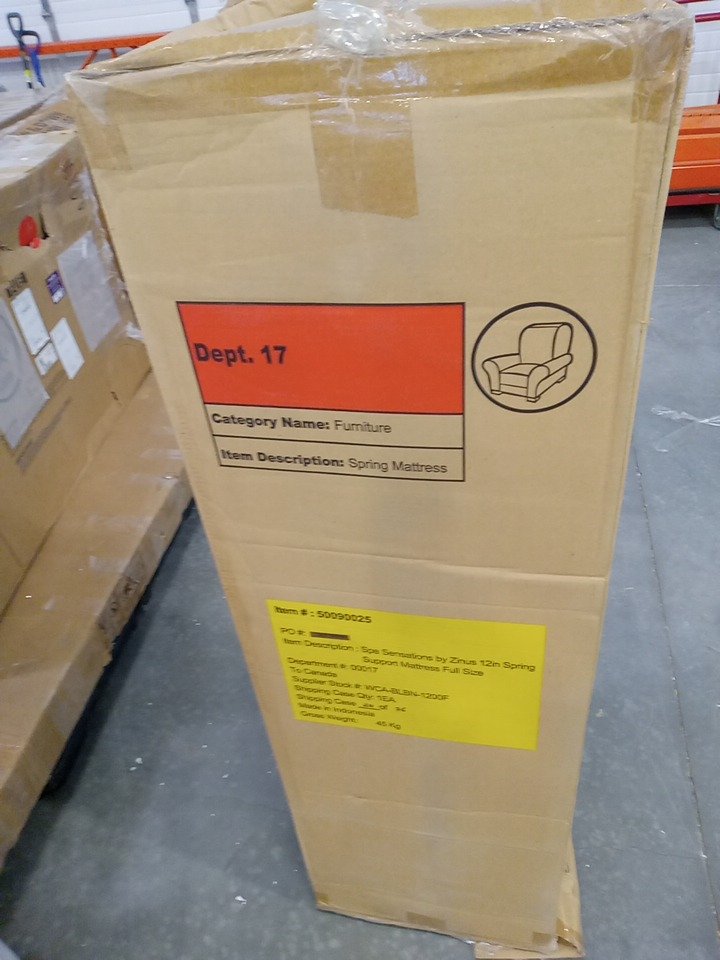 ZINUS SPA 12" SENSATIONS SUPPORT SPRING MATTRESS - FULL (MODEL: WCA-BLBN-1200F)