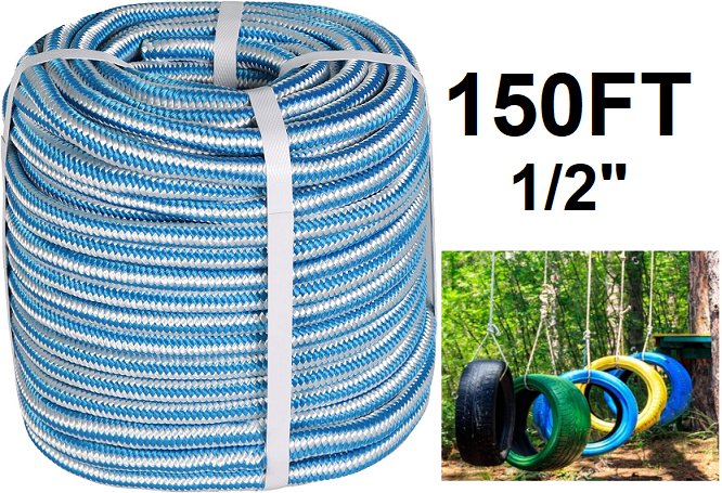 findmall 16 Braid Polyester Arborist Rigging Rope - 1/2" x 150FT - Blue/White