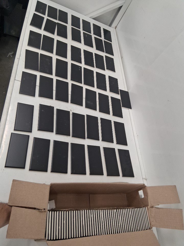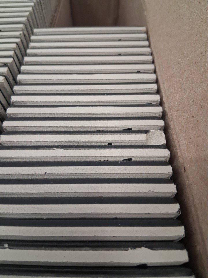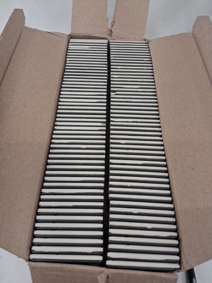 Please note that the items are covered in dust/powder and might appear dirty, however it can easily be wiped off, and the surface of the tiles appears like new. (See Photos For Examples) There are some tiles that have actual scratches on them and despite cleaning, the scuffs remained on them. There is also a couple tiles with very minor chips on corners, these should still be fully usable Hand Counted 100PK