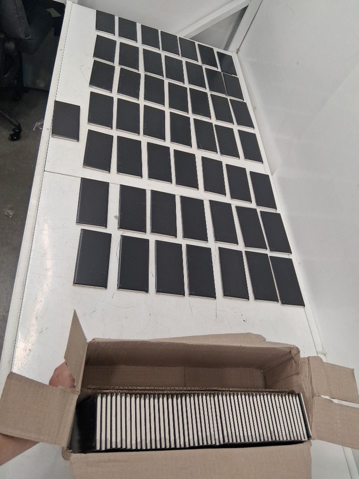 Please note that the items are covered in dust/powder and might appear dirty, however it can easily be wiped off, and the surface of the tiles appears like new. (See Photos For Examples) Hand Counted 100PK