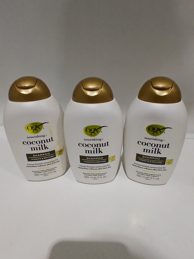 3 ogx nourishing coconut milk hydrating & restore shampoo - 385ml/each