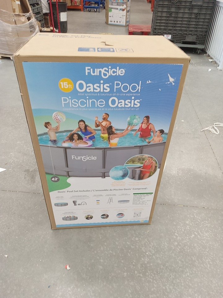 FUNSICLE OASIS ABOVE GROUND POOL SET, SPACIOUS & LUXURIOUS BACKYARD POOL- INCLUDES FILTRATION SYSTEM, CARTRIDGE, LADDER & POOL COVER - 15FT ROUND X 42" H - GREY (MODEL: 050622405)