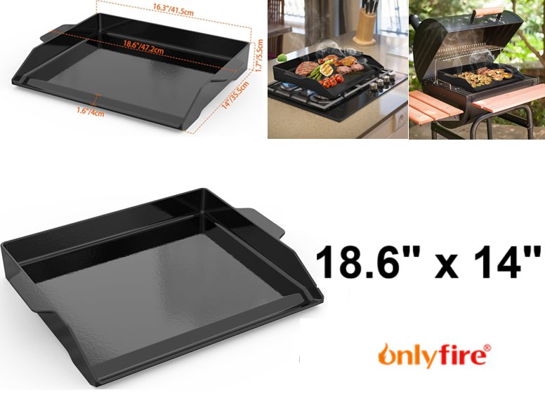 onlyfire universal enameled cast iron bbq griddle for gas grills and 2 burner range ovens - 18.6" x 14" - black (model: f-bgg8273-bs1)