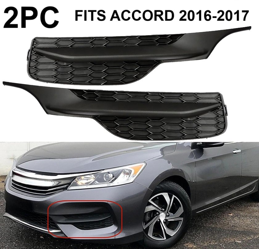 2pc seblaff front bumper blackout fog light cover - honda accord 2016-2017 - black