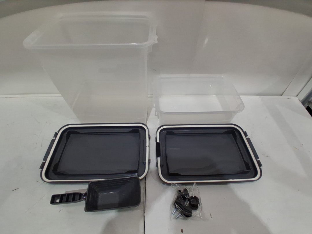2PC IRIS AIRTIGHT PET FOOD STORAGE CONTAINER WITH SCOOP - 33QT & 12QT - BLACK/CLEAR (MODEL: MP-8/mp-1)