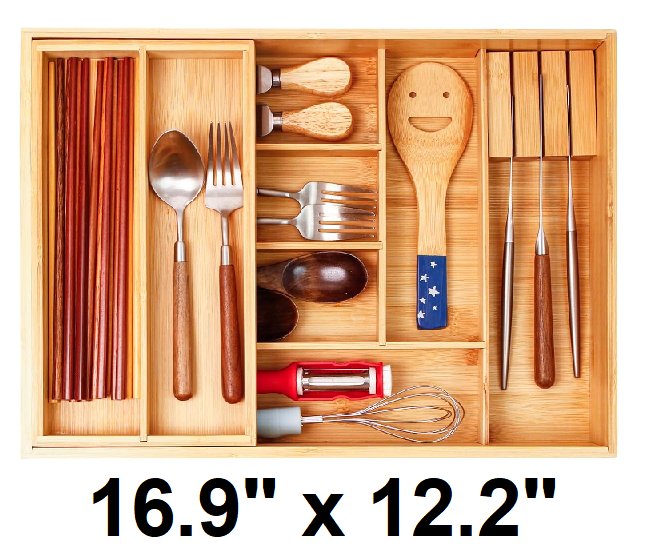 COIWAI Double Layer Bamboo Kitchen Utensil Organizer - 16.9" x 12.2" - bamboo