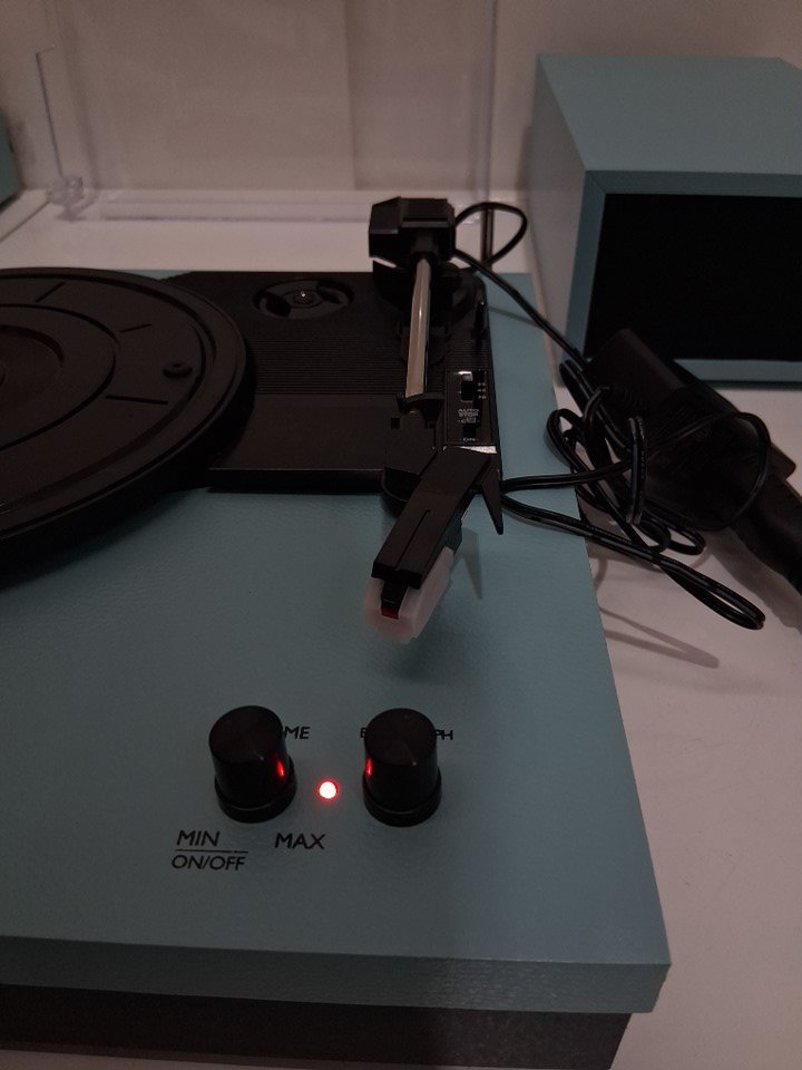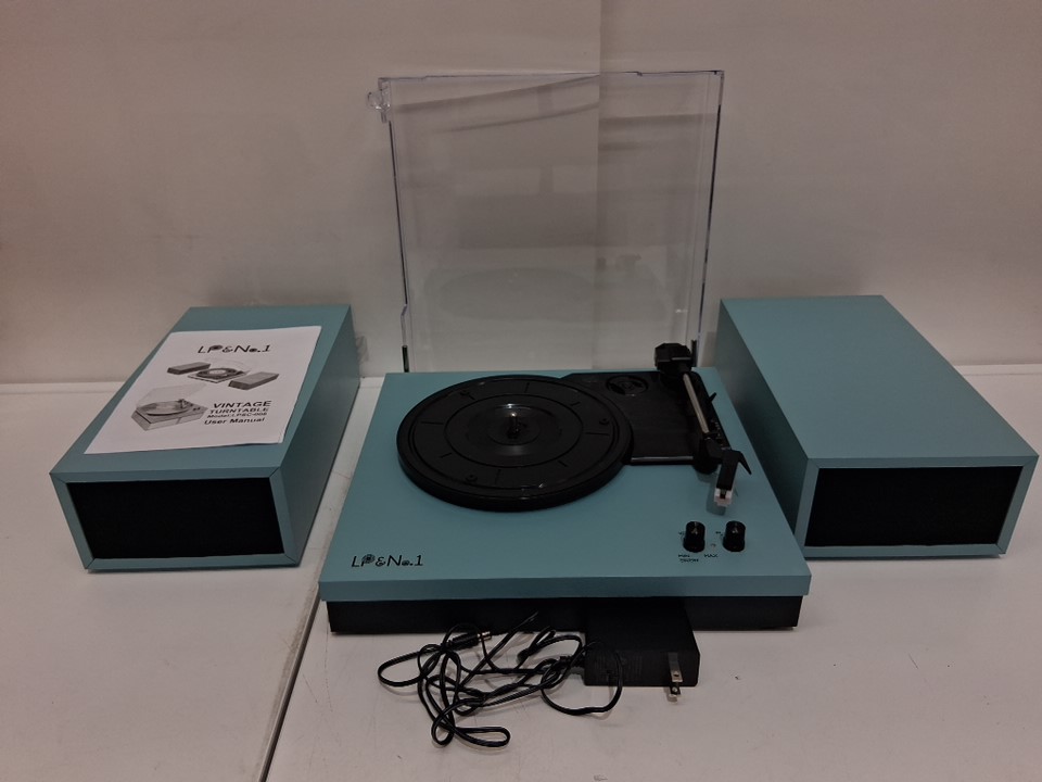 LP&NO.1 BLUETOOTH TURNTABLE WITH STEREO BOOKSHELF SPEAKERS - RETRO RECORD PLAYER WITH WIRELESS PLAYBACK - LAKE BLUE WOOD (MODEL:LPSC-008)