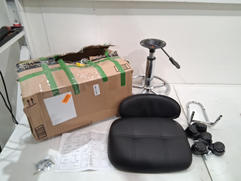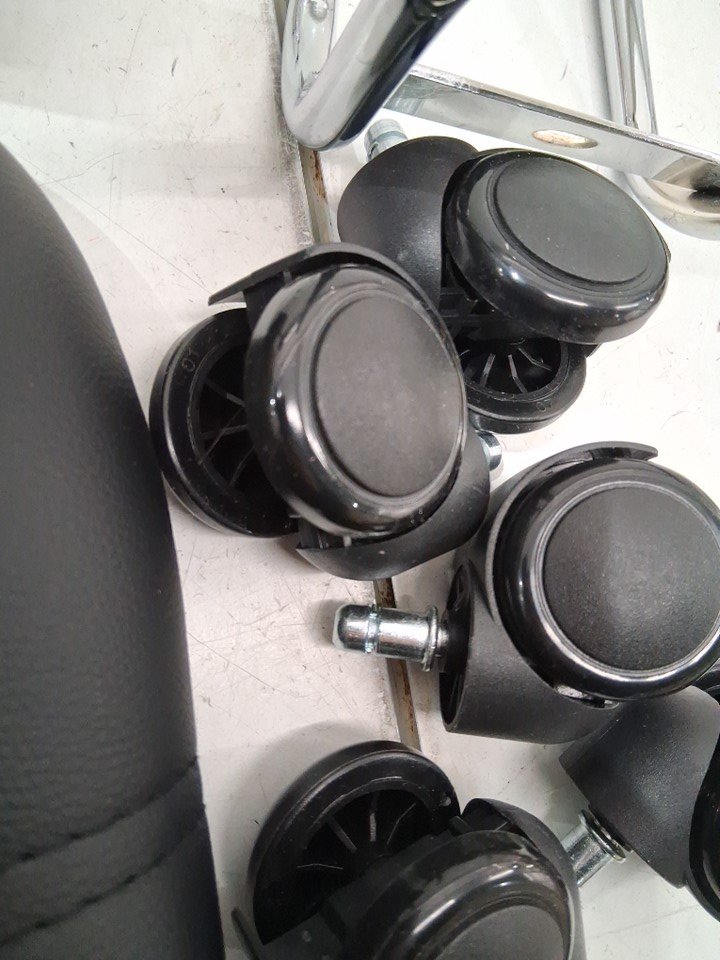 please note the chair has been previously assembled and has some dirt/dust/hair on the wheels from previous use