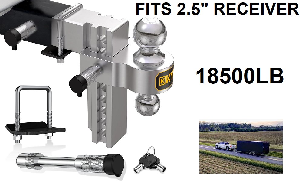 ball mount adjustable trailer hitch with 18500lb towing cap and 8" drop/rise hitch - fits 2.5" receiver - silver - (model: 18500-18inch)