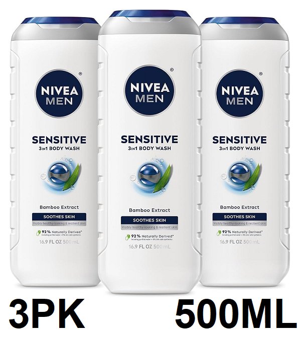 3PK nivea men sensitive body wash - 500ML/EACH