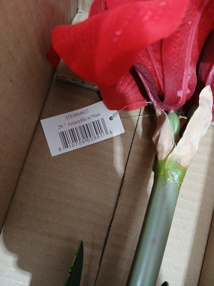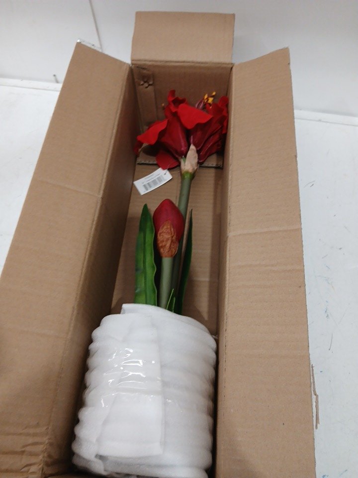 nearly natural fake Amaryllis with Vase - 20" - red/green - (model:4827)